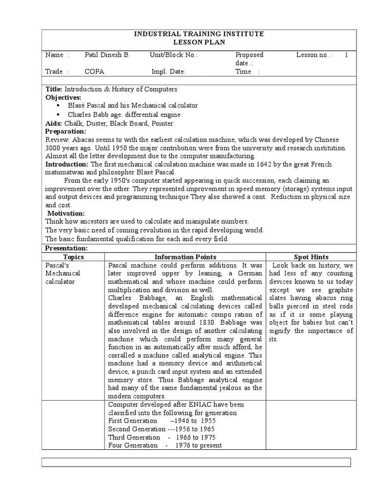 Copa Lesson Plan Sem1 In Doc File Computer Data Storage Random
