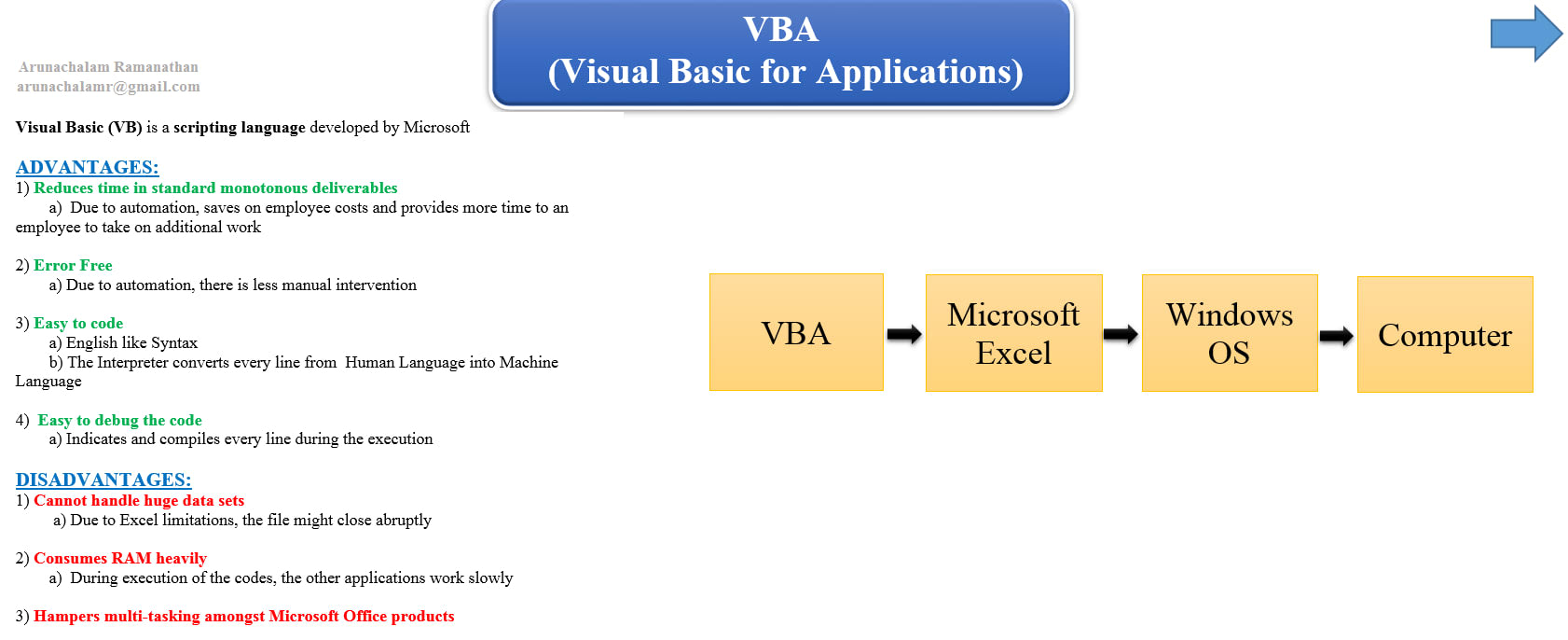 Teach Vba Or Excel Macros In A Self Learning Mode By Arunachalamr
