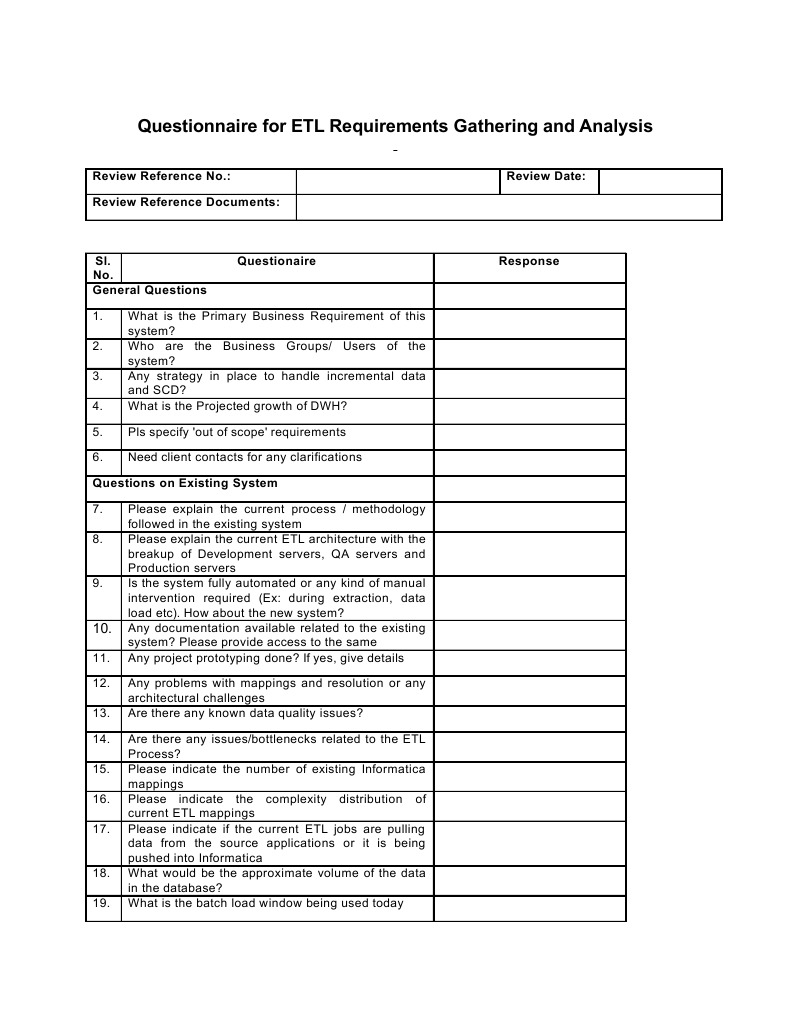 Generic Etl Questionnaire Questionnaire Information Technology