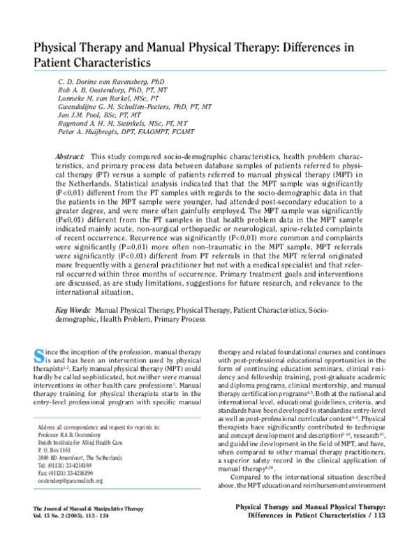 Pdf Physical Therapy And Manual Physical Therapy Differences In