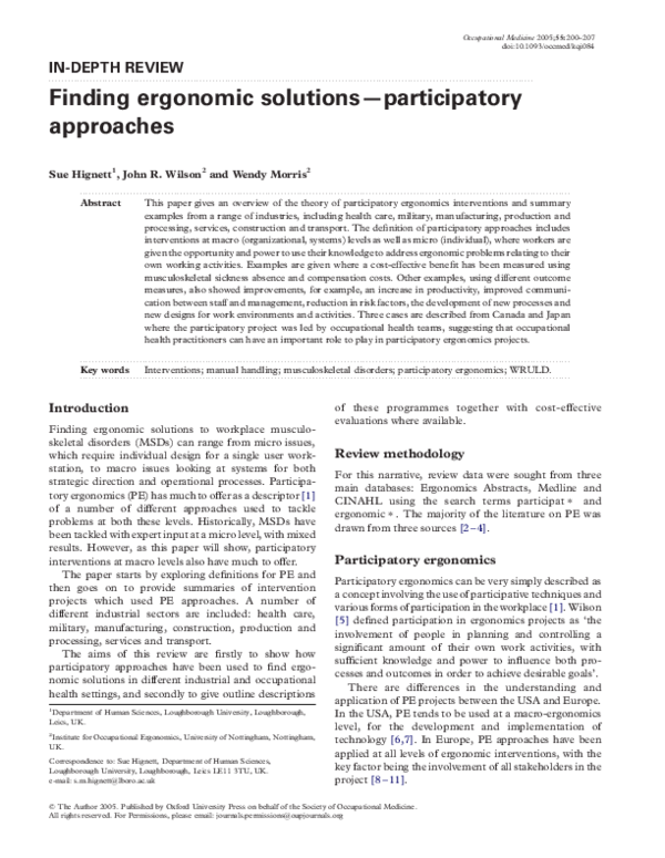Pdf Finding Ergonomic Solutions Participatory Approaches Sue