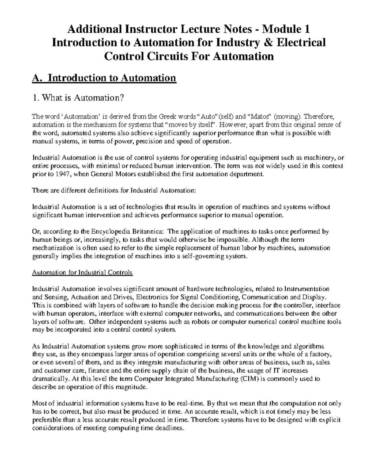 Ect 281 Module 1 Lecture Notes Intro Robotics Automation Studocu