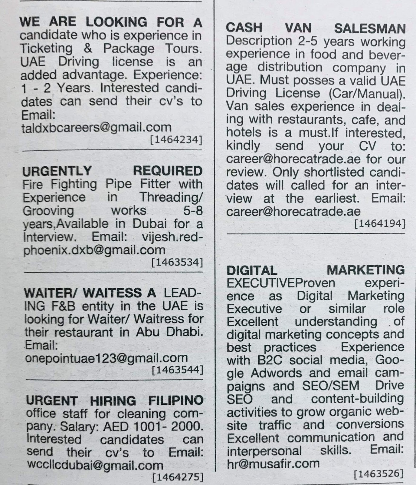 Required Following Staff For Uae Jobs Local Hiring Khalej Times